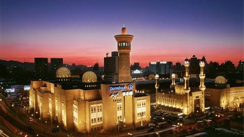 二道桥国际大巴扎位于乌鲁木齐市天山区南端的二道桥商业圈。大巴扎-新疆维吾尔语意为:集市、农贸市场,于2003年6月26日落成,是世界规模最大的大巴扎。二道桥国际大巴扎是一片现代与古代相结合的伊斯兰风格的街区,蓝色与银色的穹隆形屋顶气派而华丽,是“新疆之窗”、“中亚之窗”和“世界之窗”。